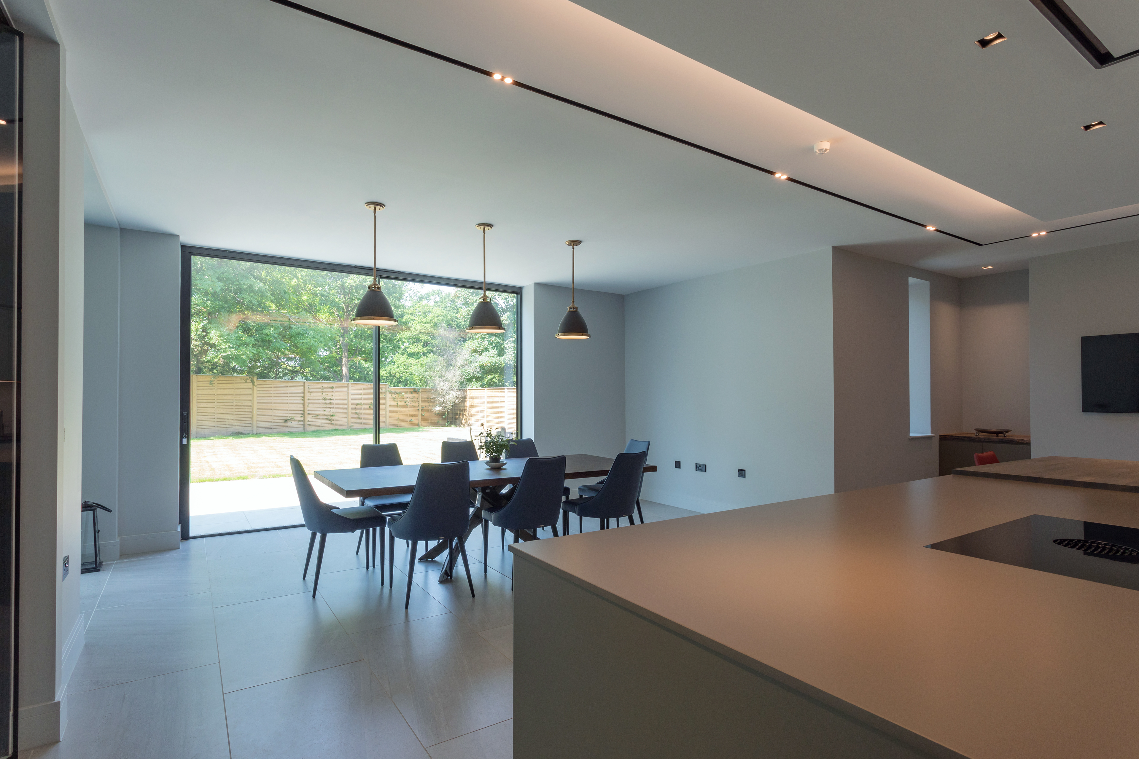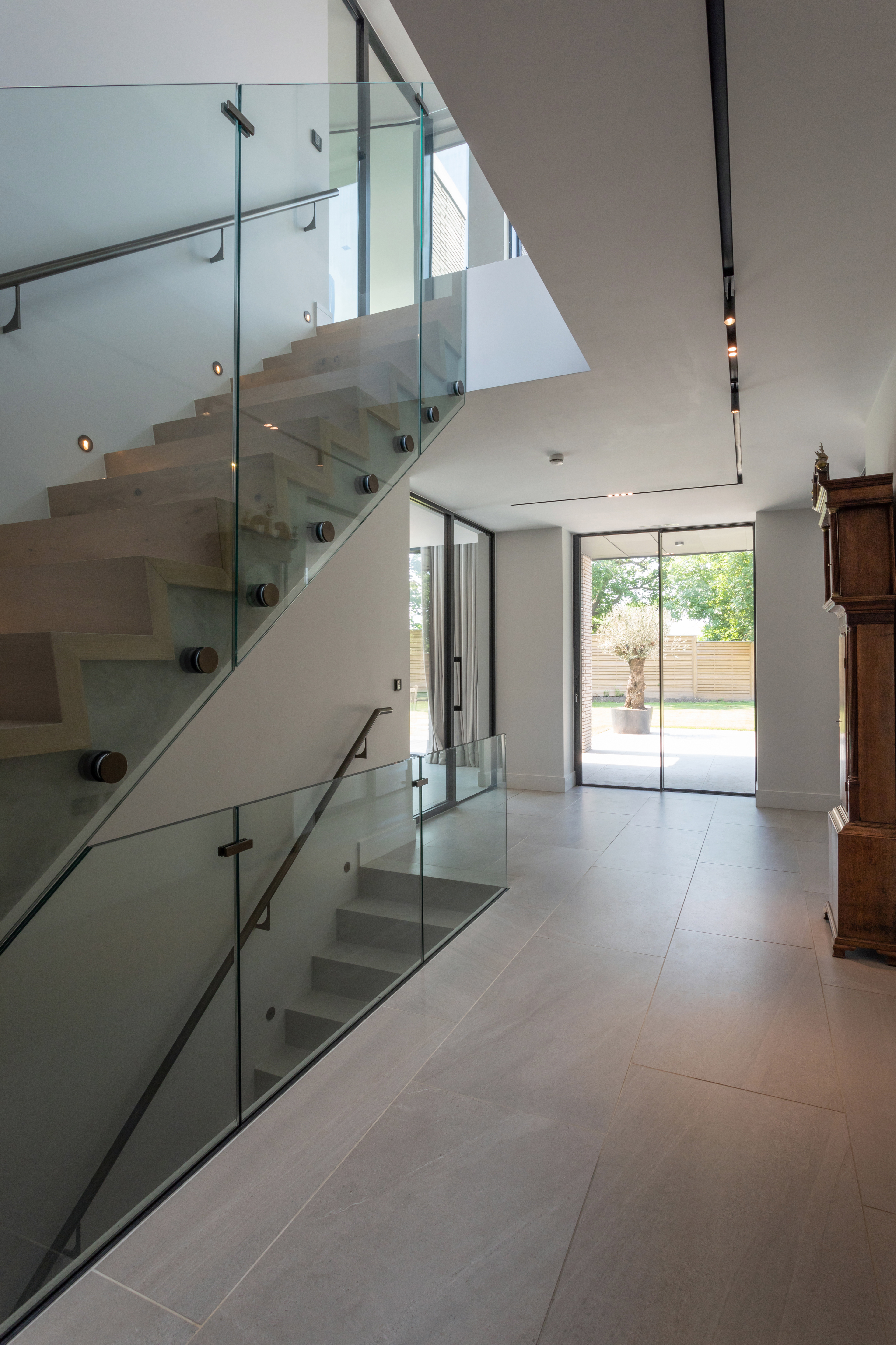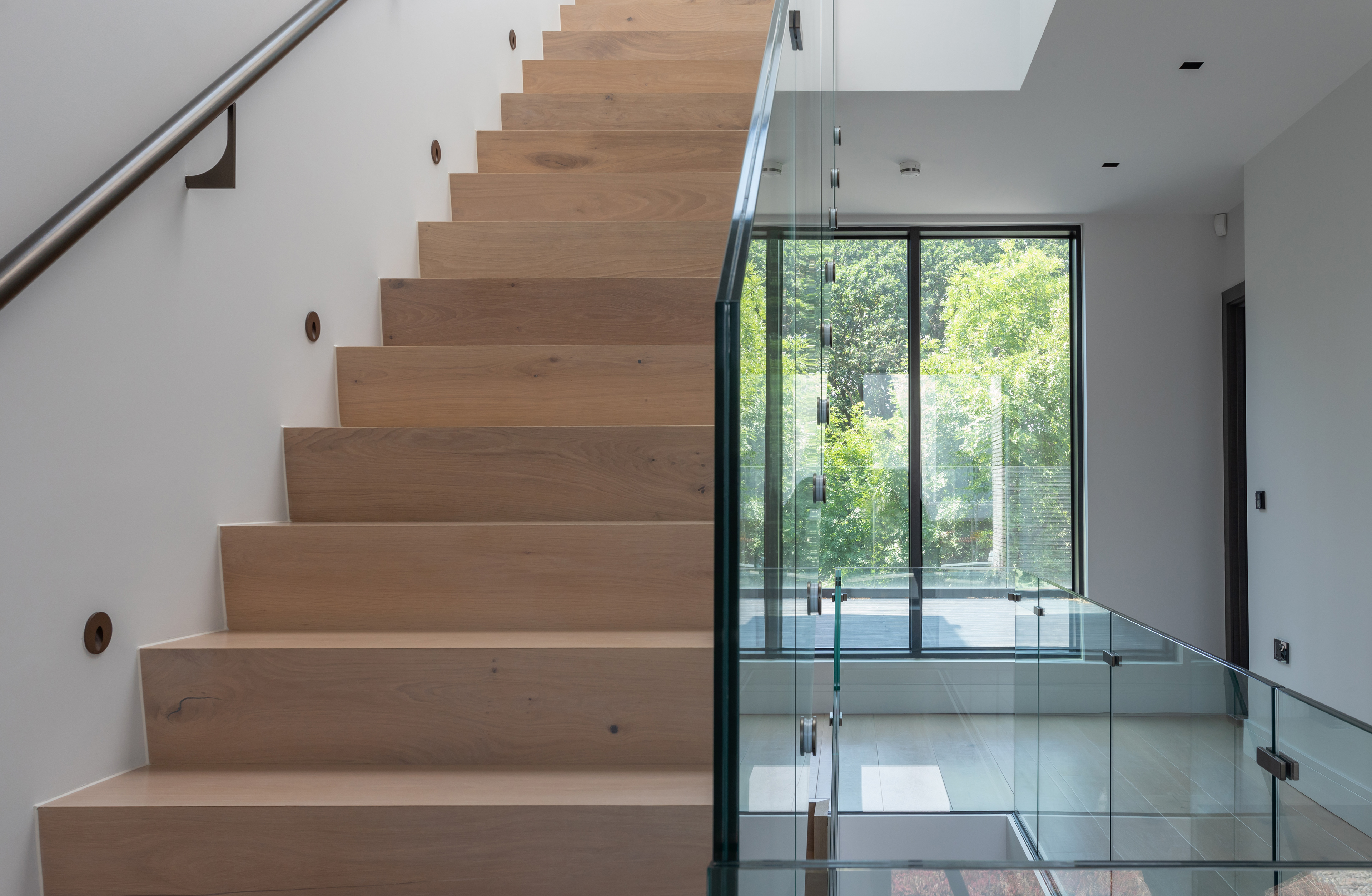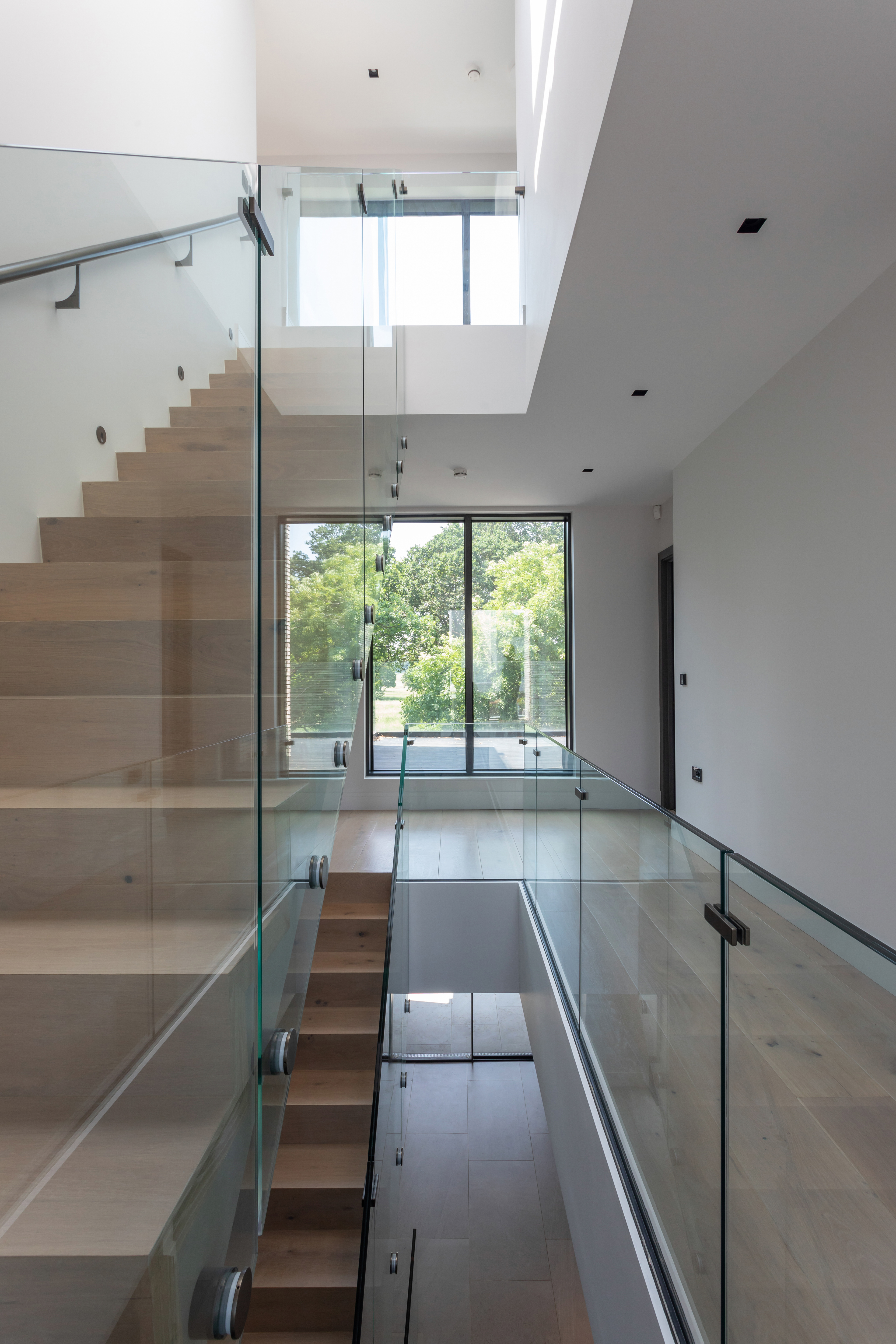 Completed Contract Value: £2,000,000 Residential new build Inter Urban Studios were brought into the project for their architectural knowledge and expert advice to complete the construction of a partially built new house following the termination of the previous contractors. We identified the pre-existing issues on site and brainstormed a series of solutions to resolve the problems as well as ensuring the building was compliant with building regulations. We took over every design decision and detail ranging from the staircase, lighting scheme, balustrade, finishes, and handrails, to name a few. The whole journey was a model of teamwork collaboration together with the client, CA, contractor, and sub-contractors where communication was key to achieving the optimal result. The pre-existing issues were ironed out and we were able to deliver an outstanding, high quality and beautiful home for the client.